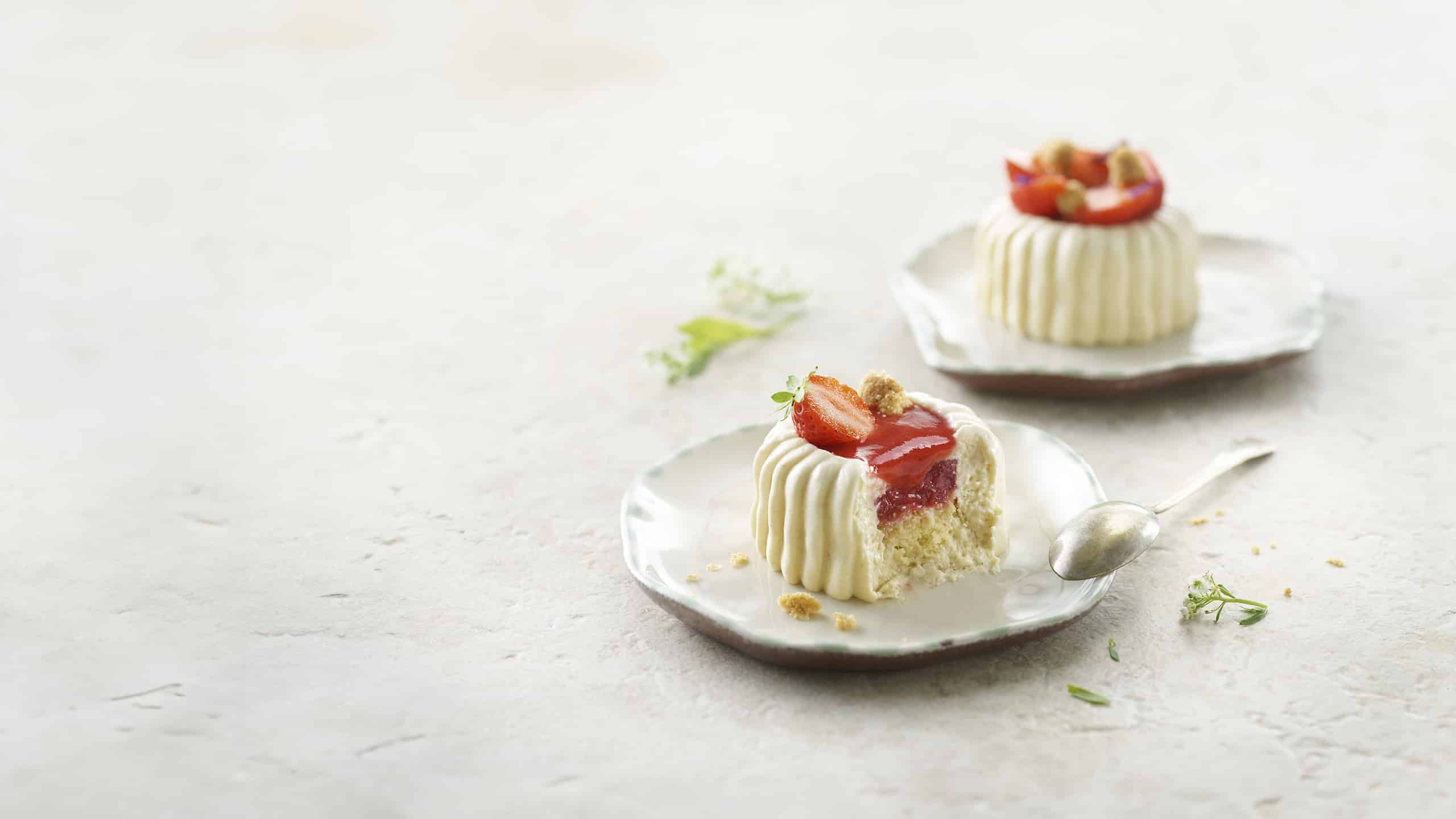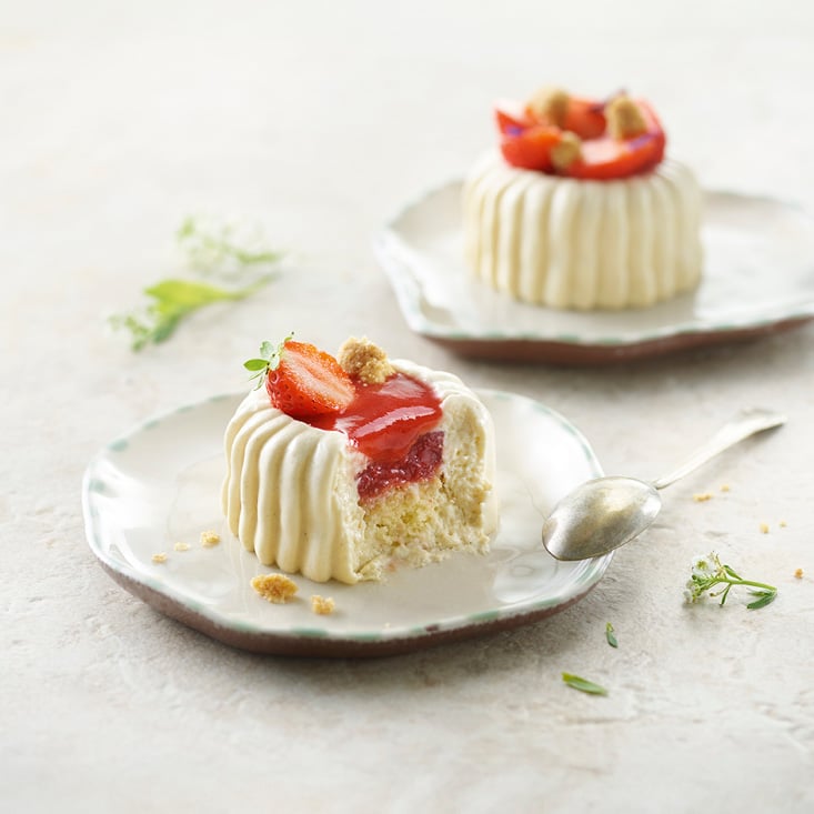 Qu’il soit simplement dressé avec des fraises entières ou de façon plus élaborée, la finition épurée de ce dessert à l’assiette, offre aux restaurateurs une grande liberté de dressage pour leurs cartes estivales.