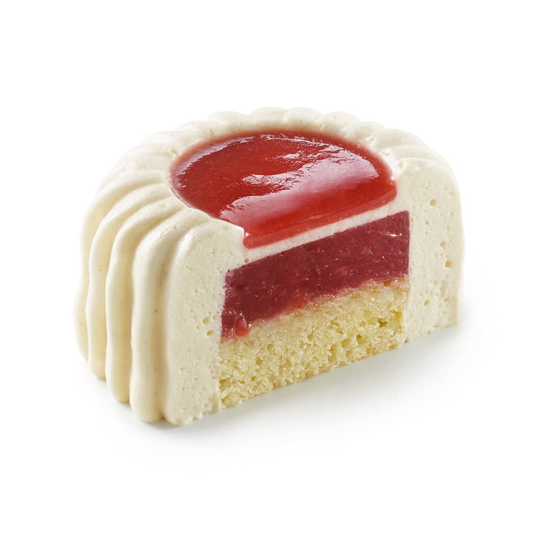 L’Intense Fraise revisite l’iconique Fraisier avec une version individuelle raffinée, légère et moins sucrée, adaptée aux nouvelles tendances de consommation. Sa crème parfumée à la vanille, son croustillant chocolat blanc-Crêpes Dentelle, et son cœur de compotée de fraises sur biscuit madeleine au citron en font un dessert sophistiqué.