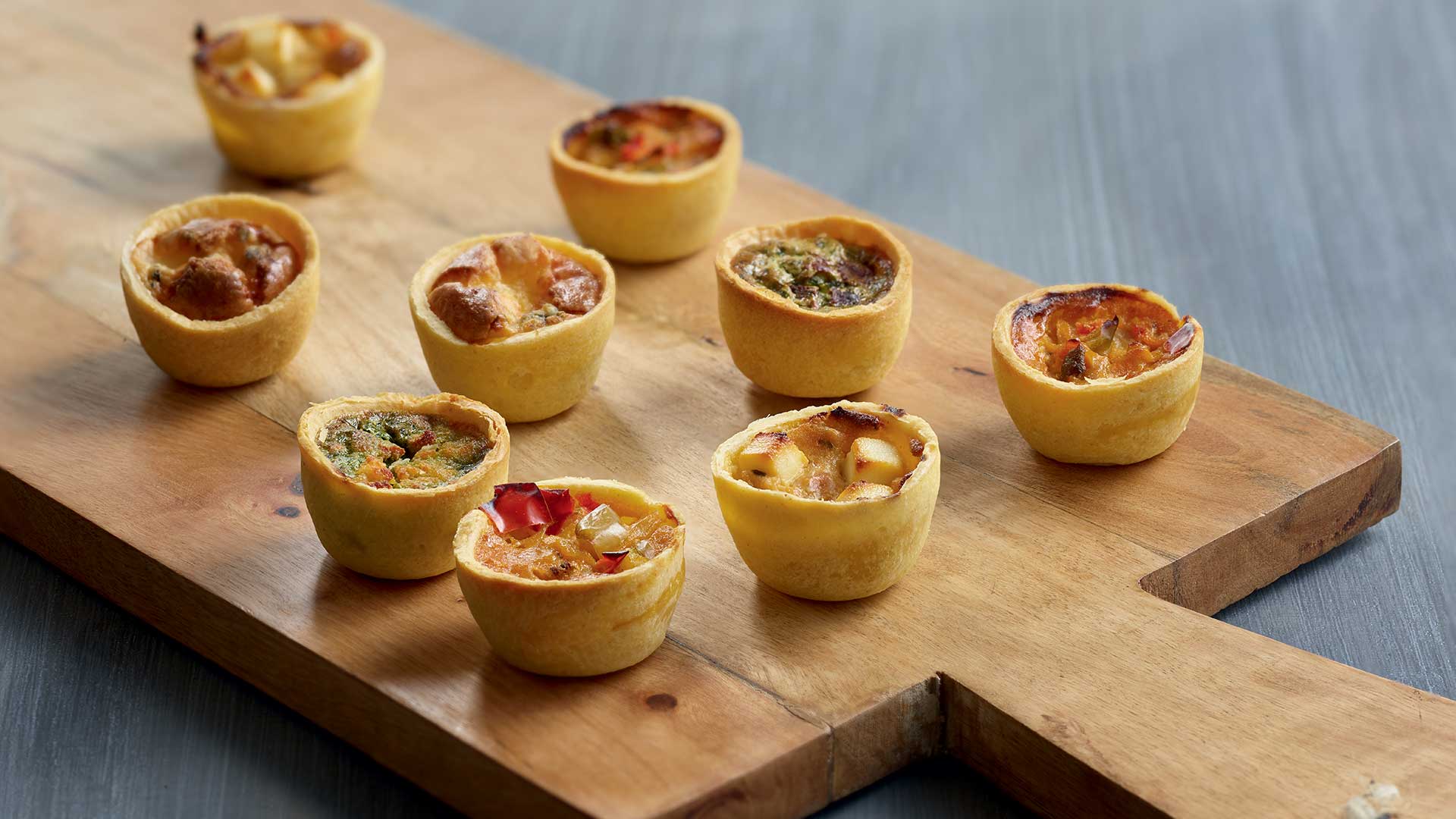 Ces amuse-bouches chauds plairont à vos convives, grâce à une pâte brisée croustillante, alliée à des textures fondantes. Les mini quiches sont également disponibles en version végétarienne.