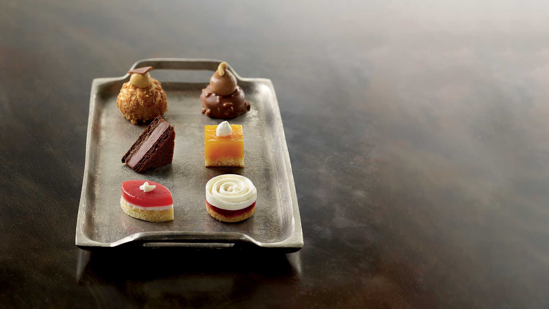 Quand l’art culinaire se mêle avec art décoratif : c’est la naissance d’un plateau de Petits Fours aussi sophistiqué que raffiné. Les Chefs Pâtissiers de la marque se sont inspirés du charme de l’Art Déco, pour élaborer leurs dernières créations de formes élégantes et géométriques.